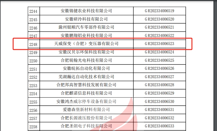 近日,全国高新技术企业认定管理工作领导小组办公室公布了《安徽省认定机构2023年认定的第二批高新技术企业备案公告名单》。合变公司名列其中,顺利通过“国家高新技术企业”复审认定。