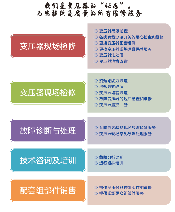 合变公司依托保变电气的技术优势,长期致力于低噪声、低损耗、低局放、高抗短路能力、安全可靠的高性能产品研发与制造,具有变压器故障专业分析、抗短路能力改造、增容改造和冷却方式改造等能力。